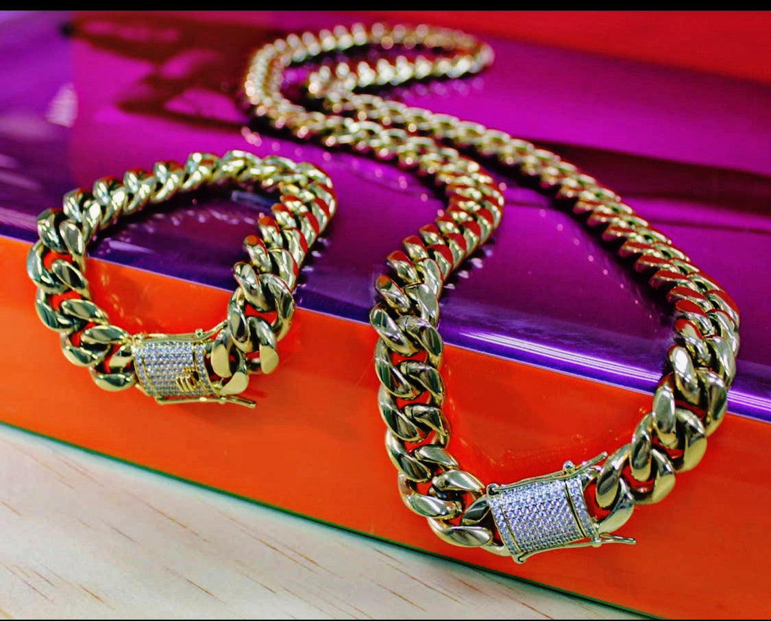 Cuban Link Chain and Bracelet with Micro CZ